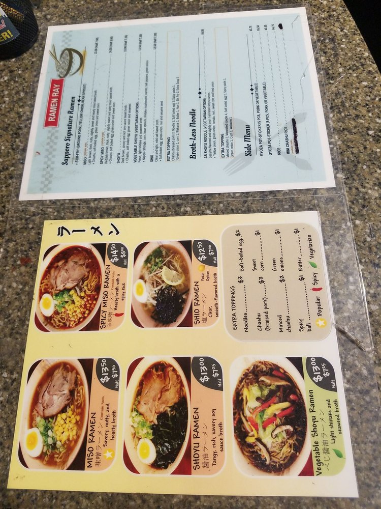 Welcome to **Ramen Ray**, a haven for ramen lovers located at 5628 E 71st St, Indianapolis. This cozy eatery offers a diverse menu that caters to all tastes, with an impressive selection of red-hot spicy ramen and comforting vegan options. Each bowl, ranging from savory Miso Ramen to the uniquely flavored Pork Tan Tan Miso, promises an authentic taste experience.